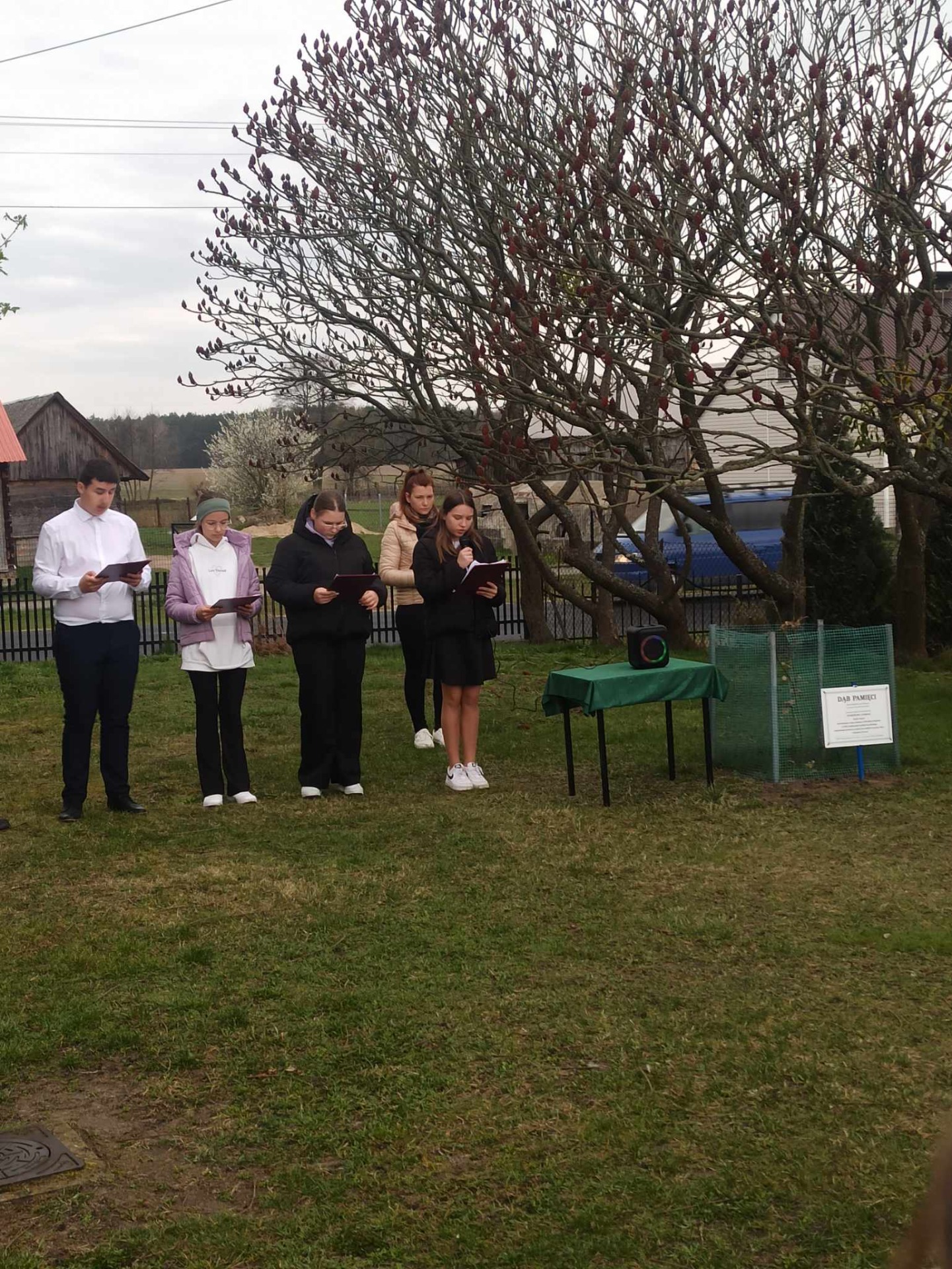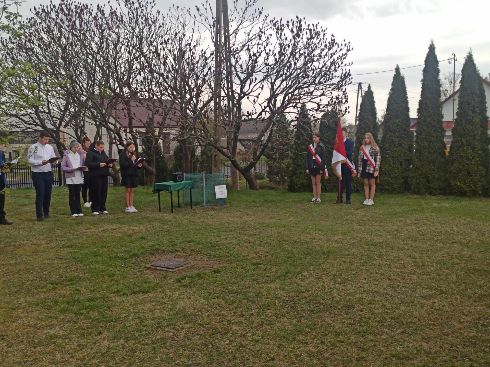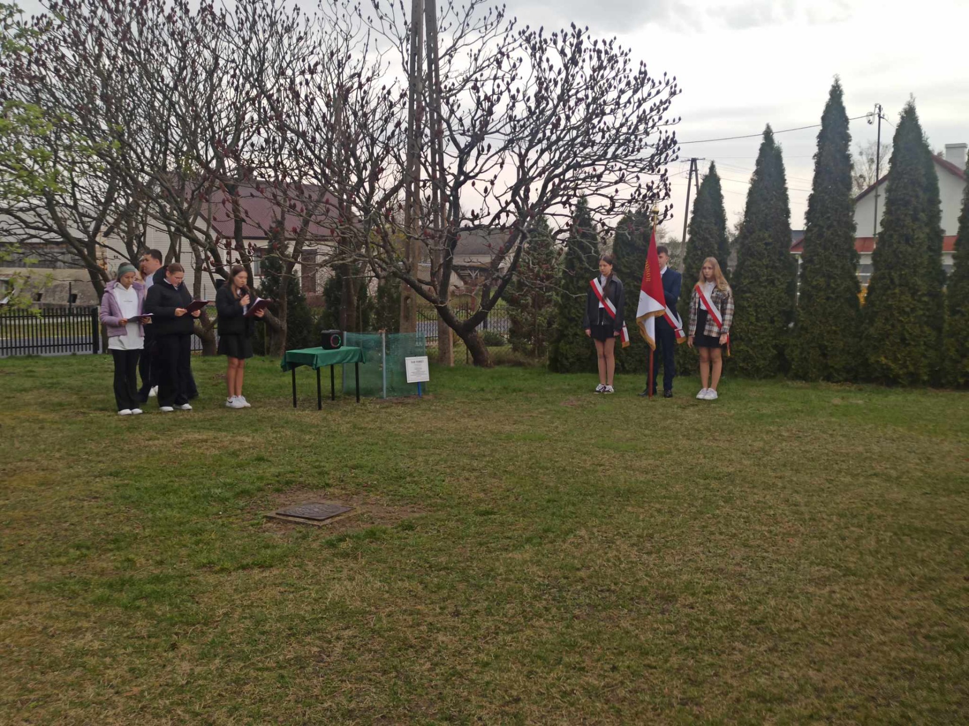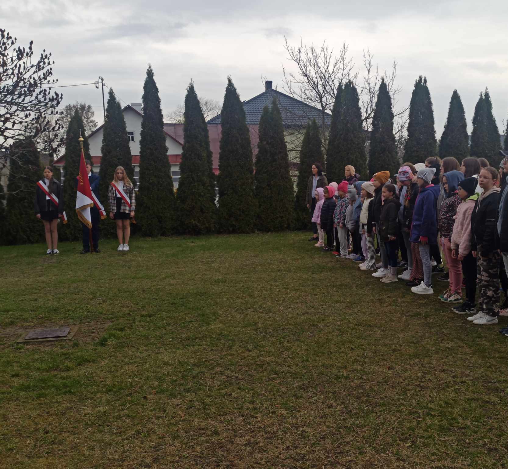 13 kwietnia obchodzimy corocznie Dzień Pamięci Ofiar Zbrodni Katyńskiej. Ustanowił go Sejm Rzeczypospolitej Polskiej w 2007 roku, aby podtrzymywać i przekazywać pamięć o Zbrodni Katyńskiej. Jedną z ofiar Zbrodni Katyńskiej był mieszkaniec naszej miejscowości: Dymitr Gomoła, syn Kazimierza i Anny urodzony w 1904 roku w Połoskach. Przed wybuchem II wojny światowej pełnił funkcję aspiranta Policji Państwowej. Wkrótce po agresji ZSRS na Polskę, w roku 1940, Dymitr Gomoła został aresztowany i uwięziony w obozie jenieckim w Ostaszkowie. Następnie został zamordowany przez NKWD w Kalininie (dziś: Twerze) strzałem w tył głowy. Nasza szkoła uczestniczy w programie edukacyjnym „Katyń… Ocalić od zapomnienia”. Dlatego też w roku 2022 posadziliśmy na terenie szkolnym Dąb Pamięci poświęcony postaci Dymitra Gomoły. Obowiązuje w całym kraju zasada : „jedno nazwisko z listy katyńskiej = jeden Dąb Pamięci”. 14 kwietnia b.r. delegacja uczniów z kl. 5,6,7 przybliżyła nam tę jedną z najtragiczniejszych kart z historii Polski, po czym minutą ciszy uczciliśmy pamięć Dymitra Gomoły i 22 tysięcy polskich ofiar Zbrodni Katyńskiej.
