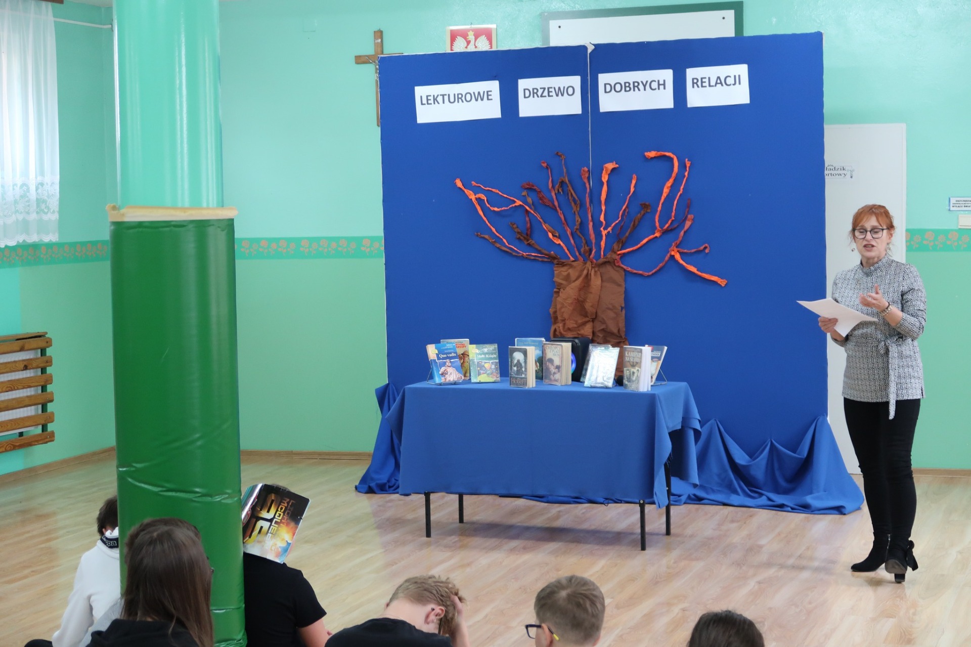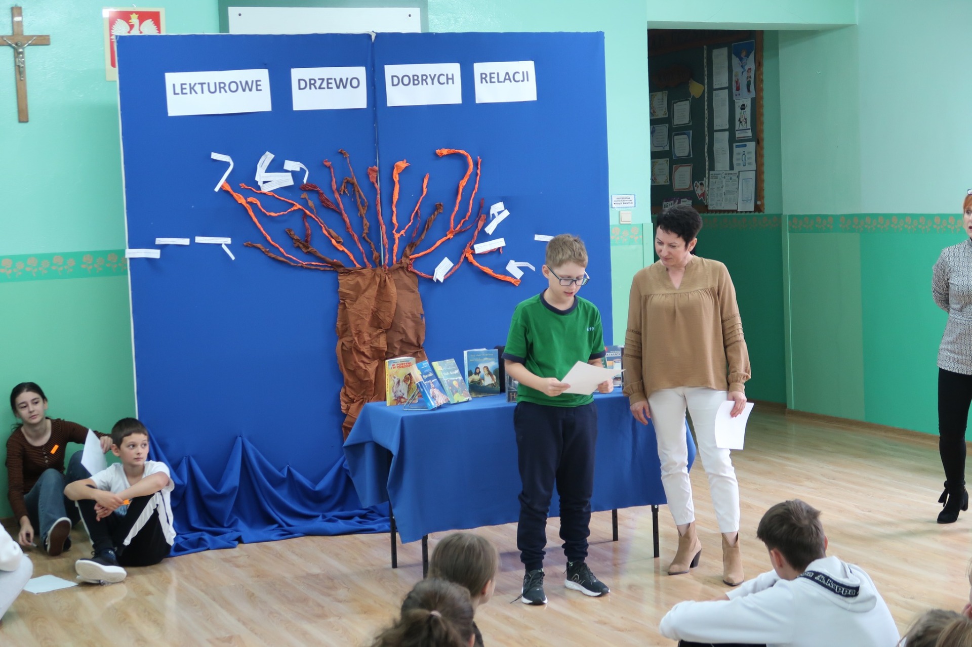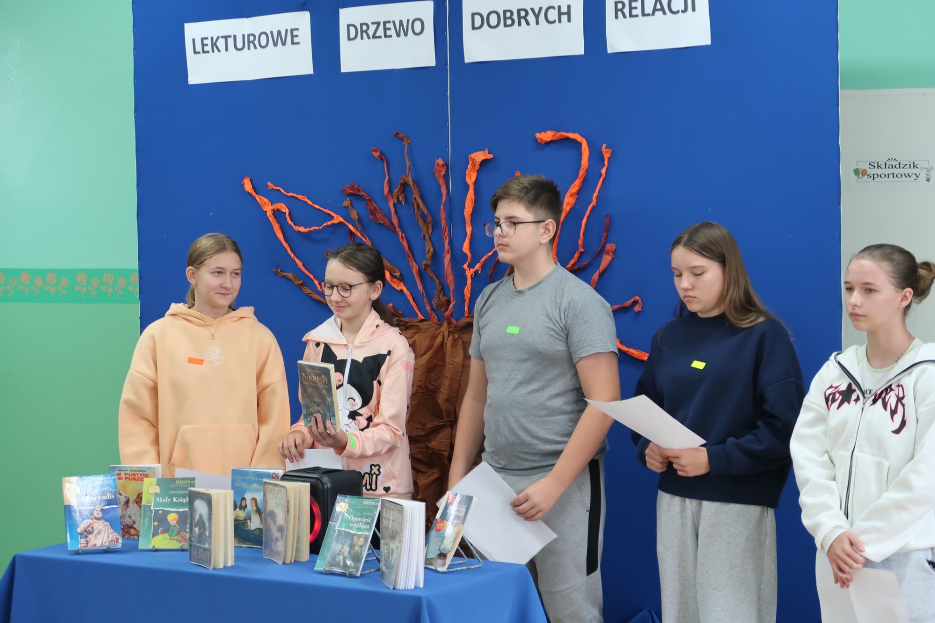 Warsztaty poprzedziły wspólne czytanie w ramach Ogólnopolskiego Dnia Głośnego Czytania. To nie przypadek, że sięgnęliśmy po fragmenty znanych lektur, kryjących w sobie mądre myśli o przyjaźni, odwadze i sile dobra. Od bohaterów literackich uczyliśmy się, jak być dla siebie nawzajem wsparciem i jak budować relacje oparte na zrozumieniu, życzliwości i szacunku. Utworzone przez nas Lekturowe Drzewo Dobrych Relacji stało się symbolem wspólnoty i literackiej inspiracji.