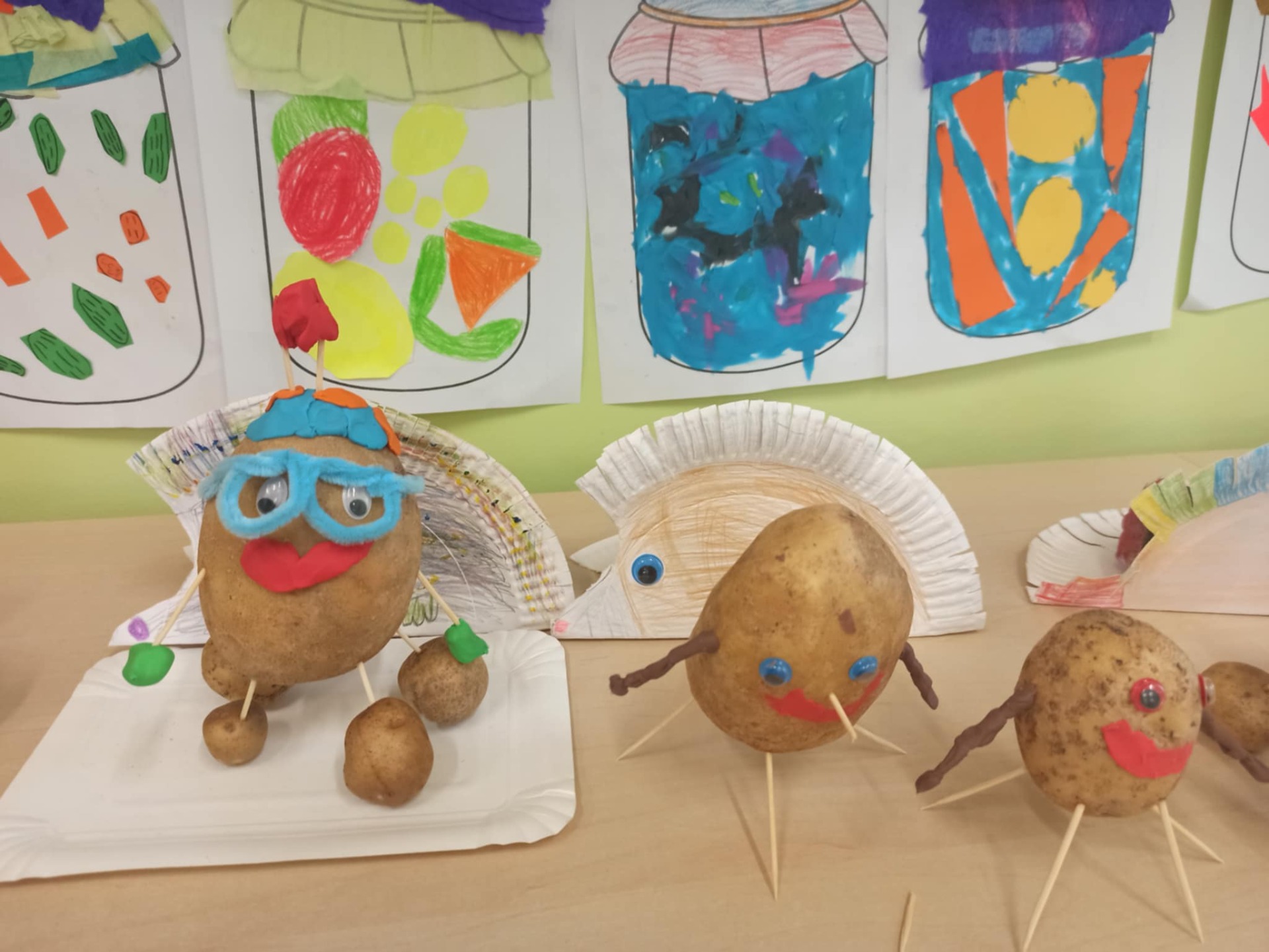 Nie zabrakło również kreatywnej zabawy – uczniowie mieli okazję obejrzeć różnorodne okazy ziemniaków, a następnie puścić wodze fantazji i stworzyć z nich własne, ziemniaczane stworki. Efekty ich pracy były naprawdę imponujące!