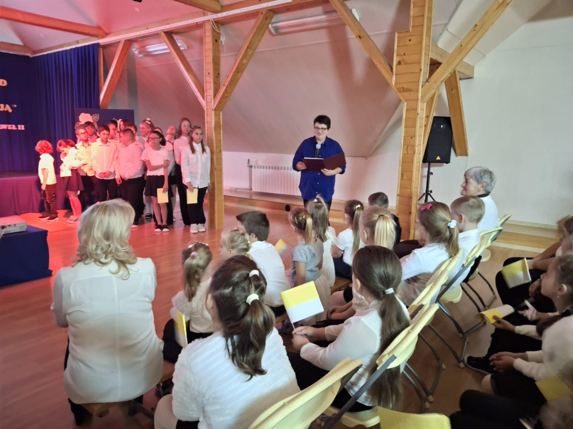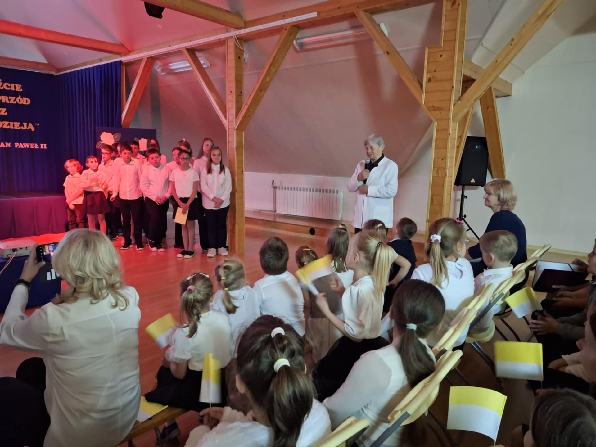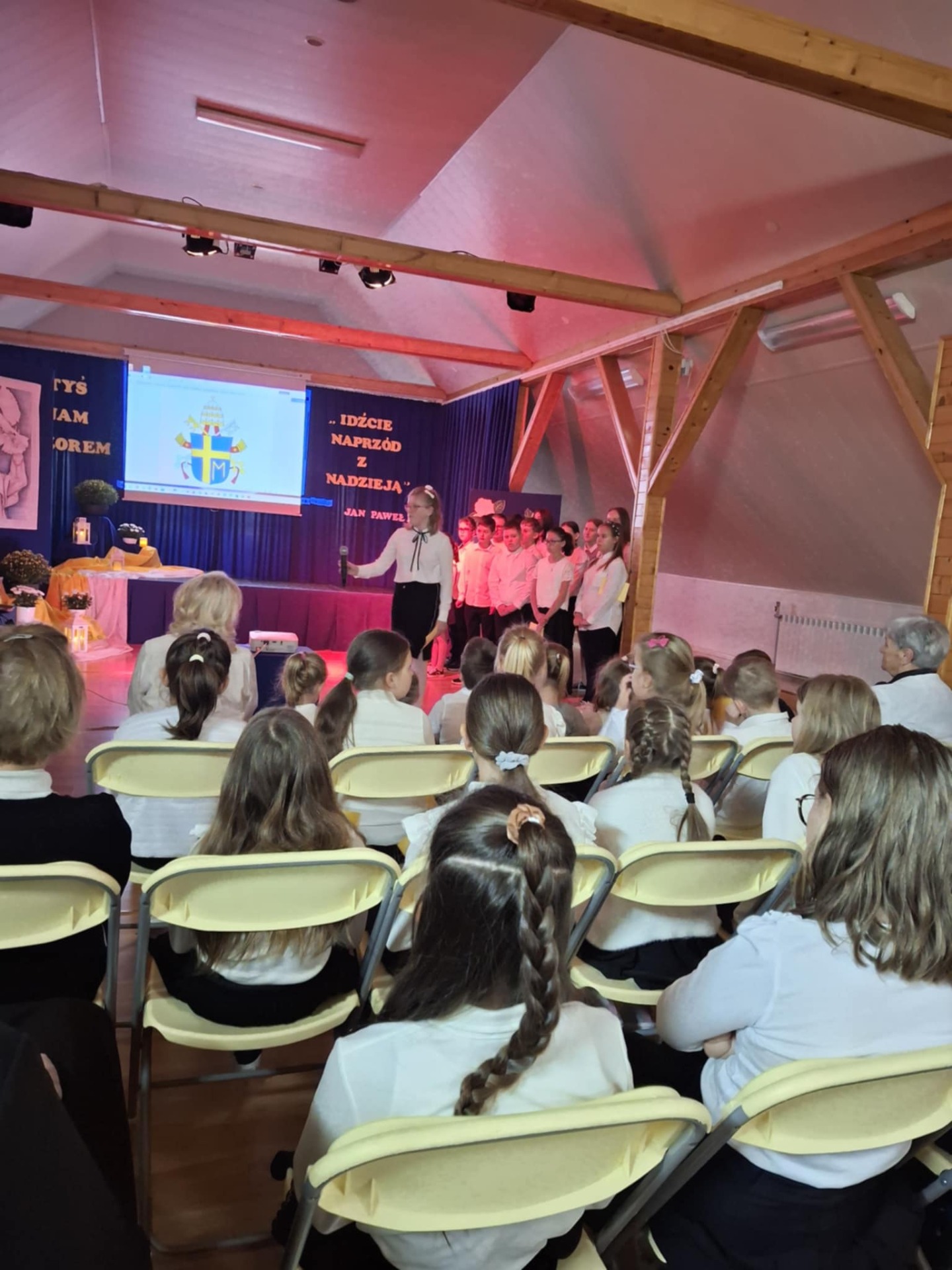W uroczystości wzięli udział: pani dyrektor, grono pedagogiczne, zaproszeni goście, rodzice oraz uczniowie.Część artystyczna – piękny montaż słowno-muzyczny przygotowany przez uczniów – przybliżyła życie, nauczanie i ponadczasowe wartości, którymi kierował się nasz Patron. Wspólny śpiew pieśni wprowadził wszystkich w nastrój refleksji i wdzięczności.
