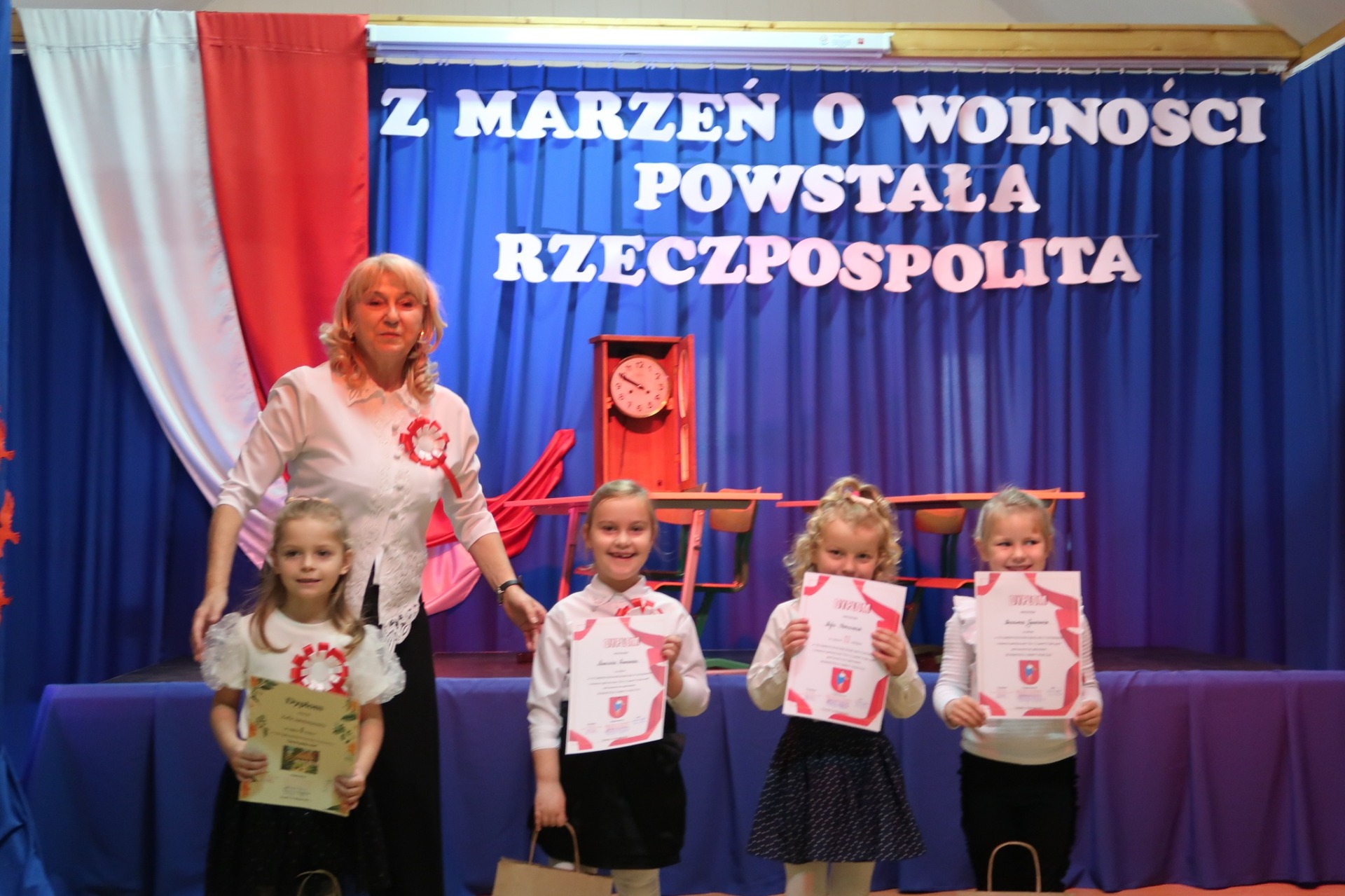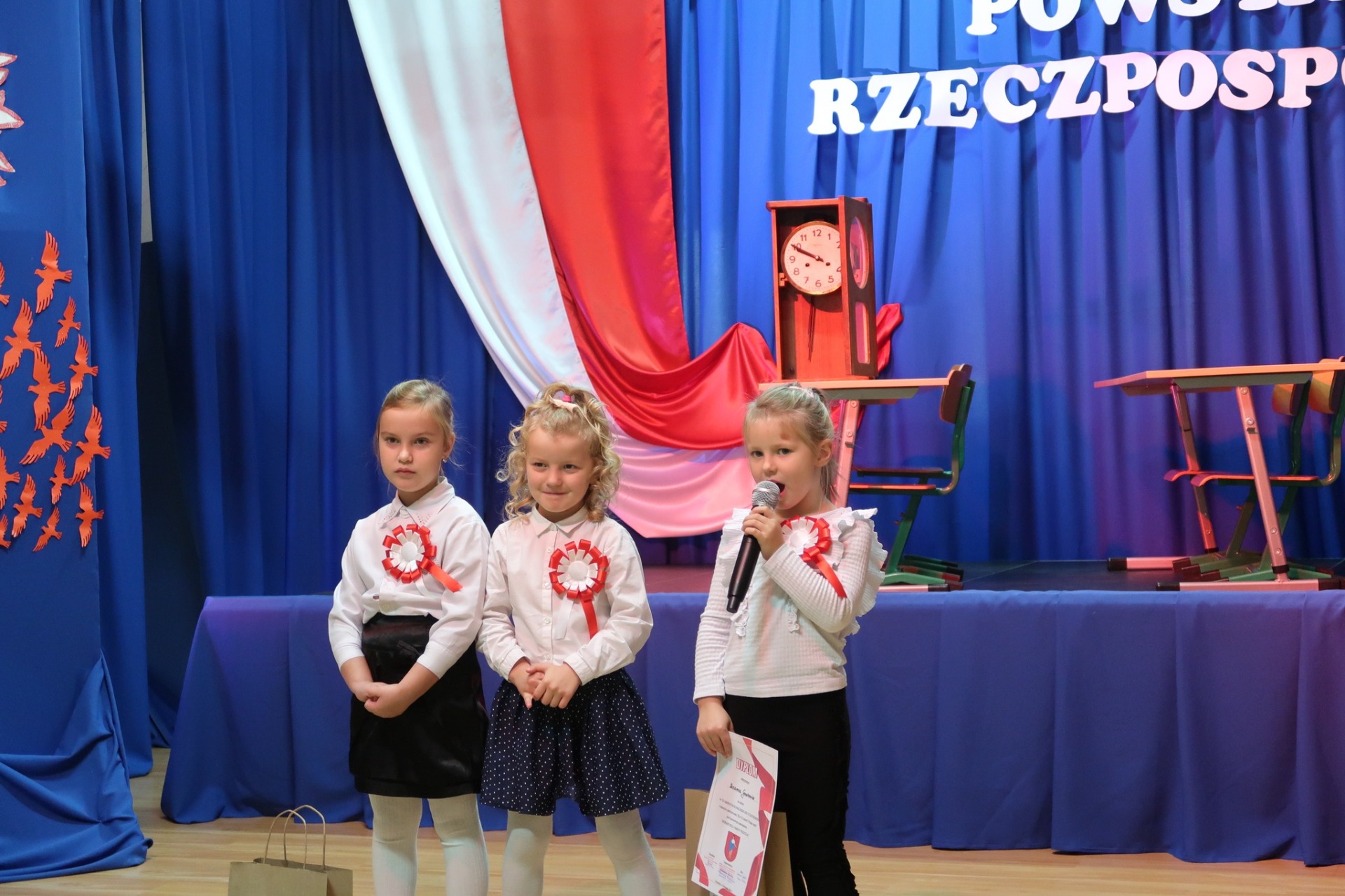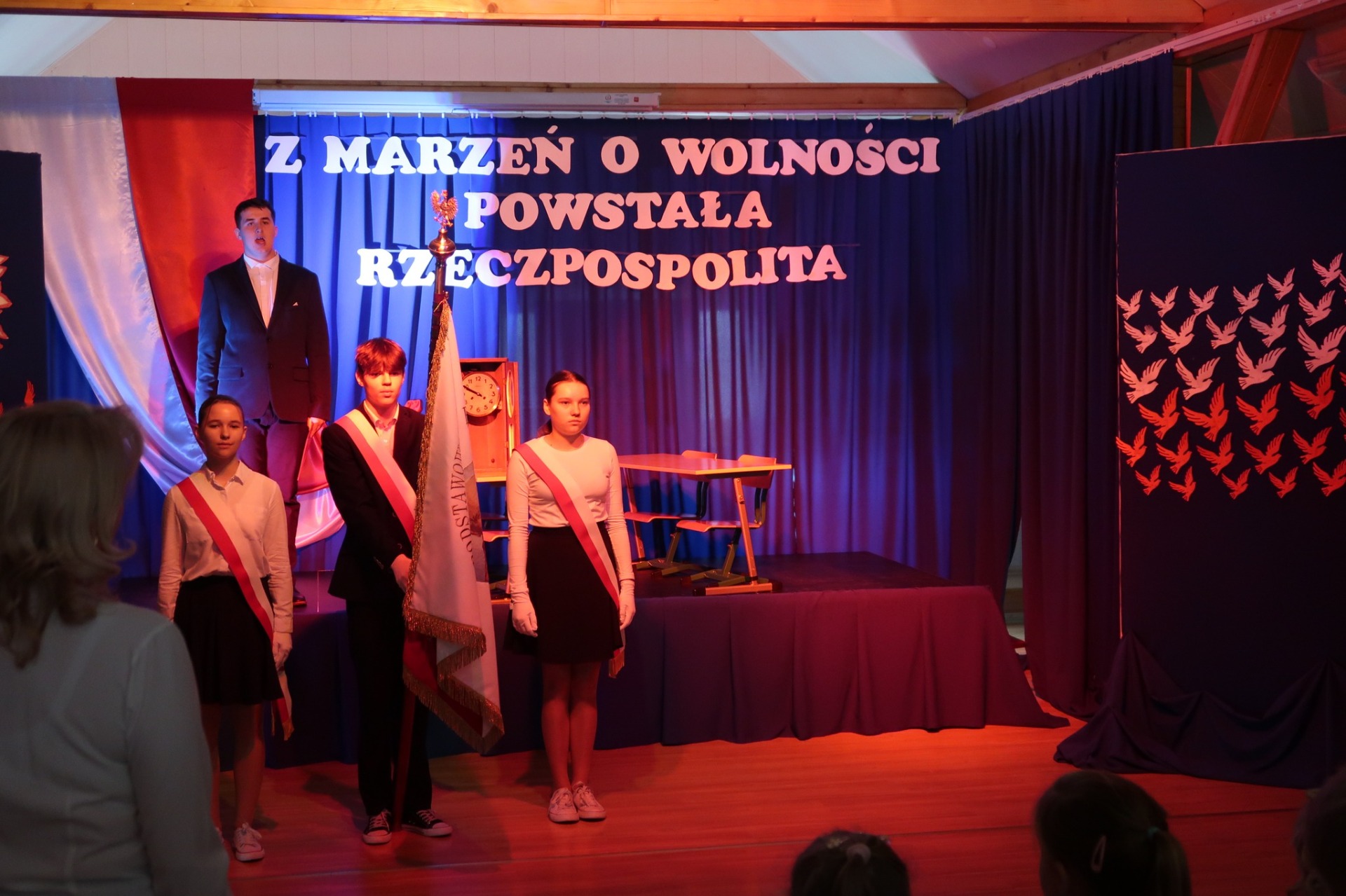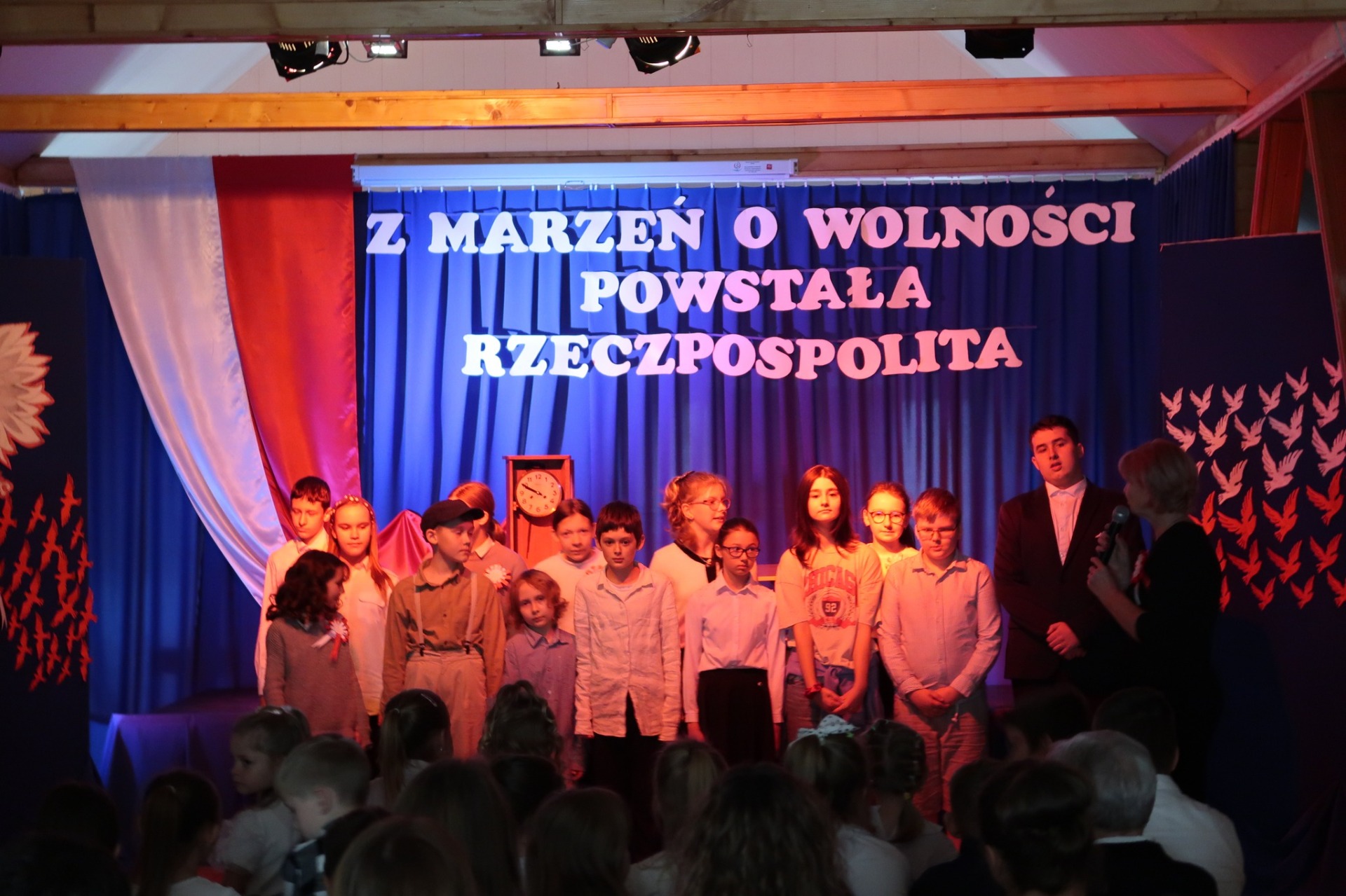 Przedstawieniem teatralnym uczciliśmy w naszej szkole 107. rocznicę odzyskania przez Polskę niepodległości. Widzowie odbyli niezwykłą podróż w czasie: zobaczyli fragmenty wydarzeń z przeszłości i odczuli emocje, jakie towarzyszyły naszym rodakom przez 123 lata zaborów, kiedy Polacy nie mogli swobodnie mówić w języku polskim ani uczyć się w języku ojczystym i byli zmuszeni do walki o niepodległość państwa, niejednokrotnie poświęcając swoje życie.